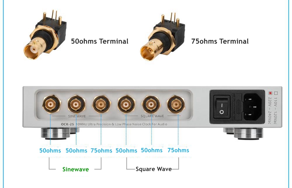 - The BNC terminal for clock output is divided into 50 and 75 ohms corresponding to different output impedance.