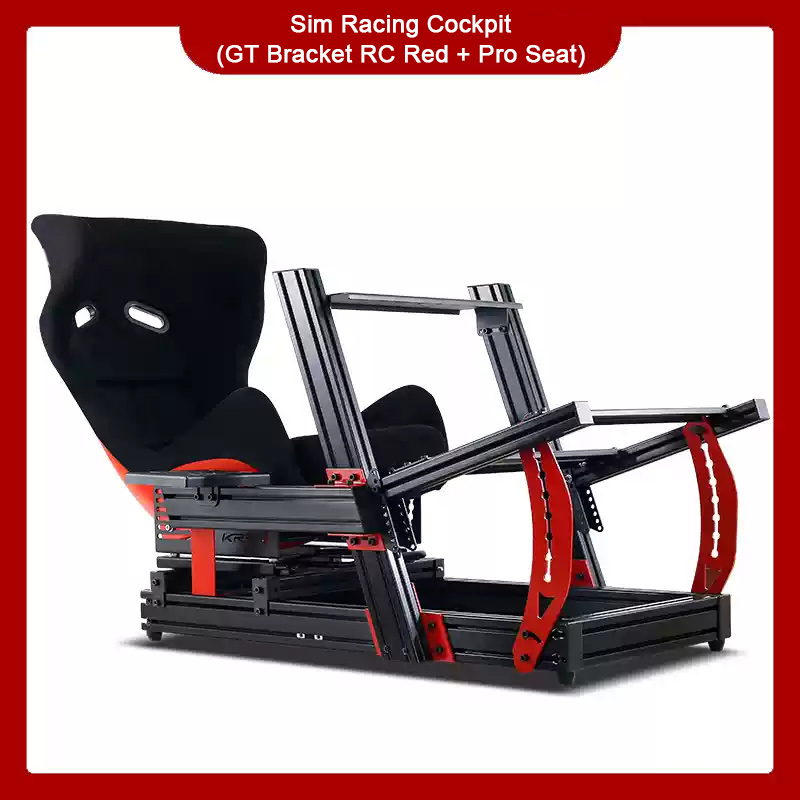 Simplayer Racing Simulator Cockpit Racing Simulator Seat (GT Bracket RC Red + Pro Seat) for Games