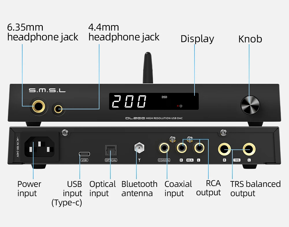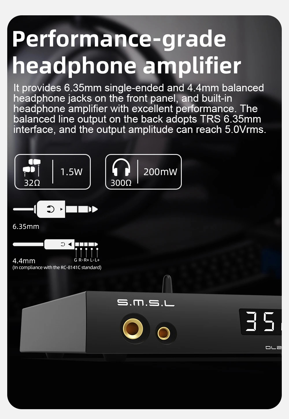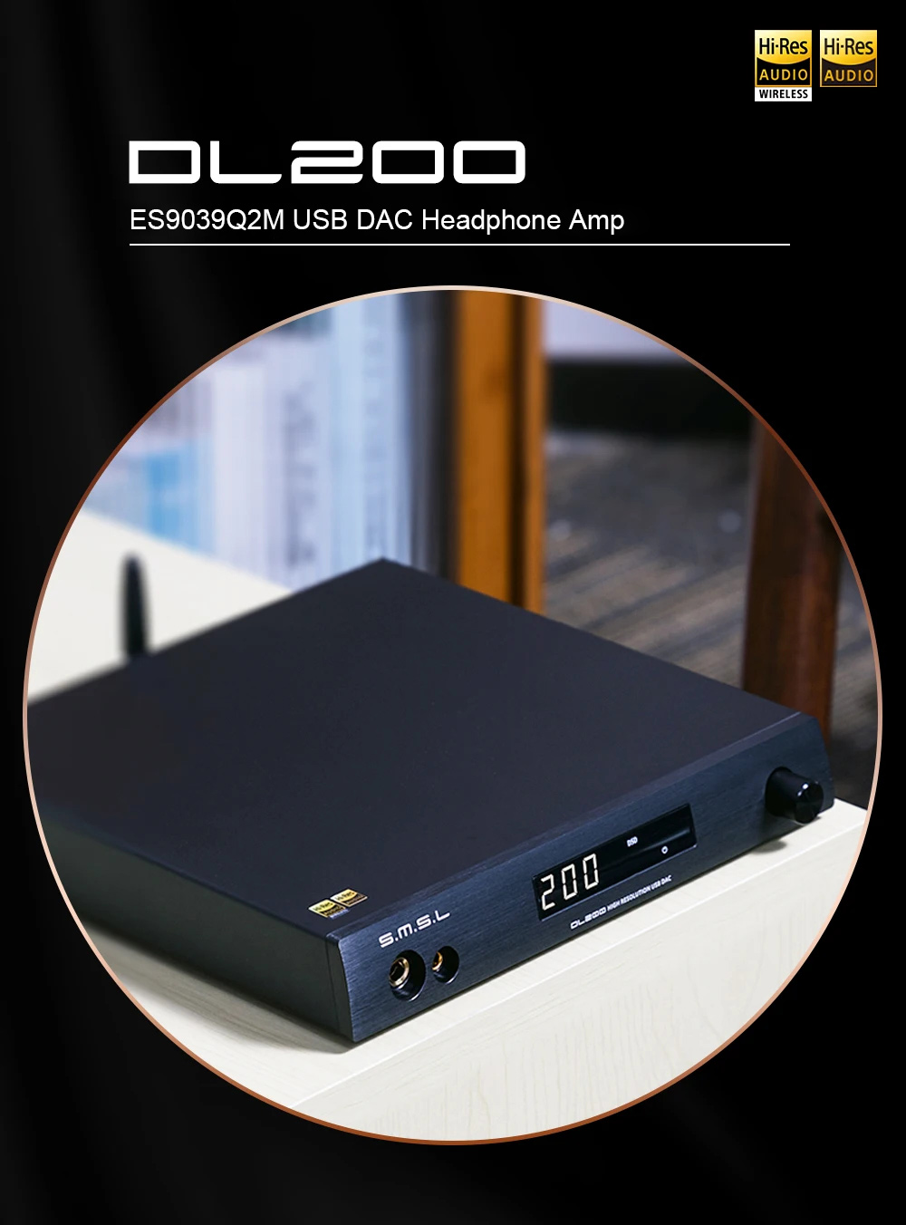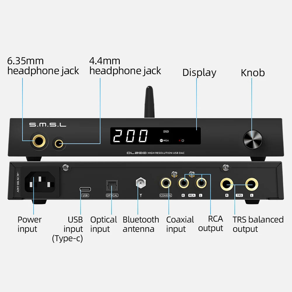 SMSL DL200 USB DAC ES9039Q2M Bluetooth DAC Headphone Amplifier DSD512 for 6.35mm 4.4mm Headphones