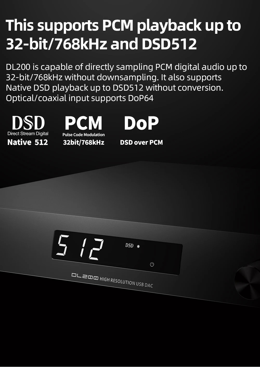 - Supports for MQA and MQA-CD full decoding: DL200 is a complete decoder for MQA, which will fully expand music files for MQA to provide high-quality sound sources. At this playing level, you will fully hear the content created by the artist in the studio.