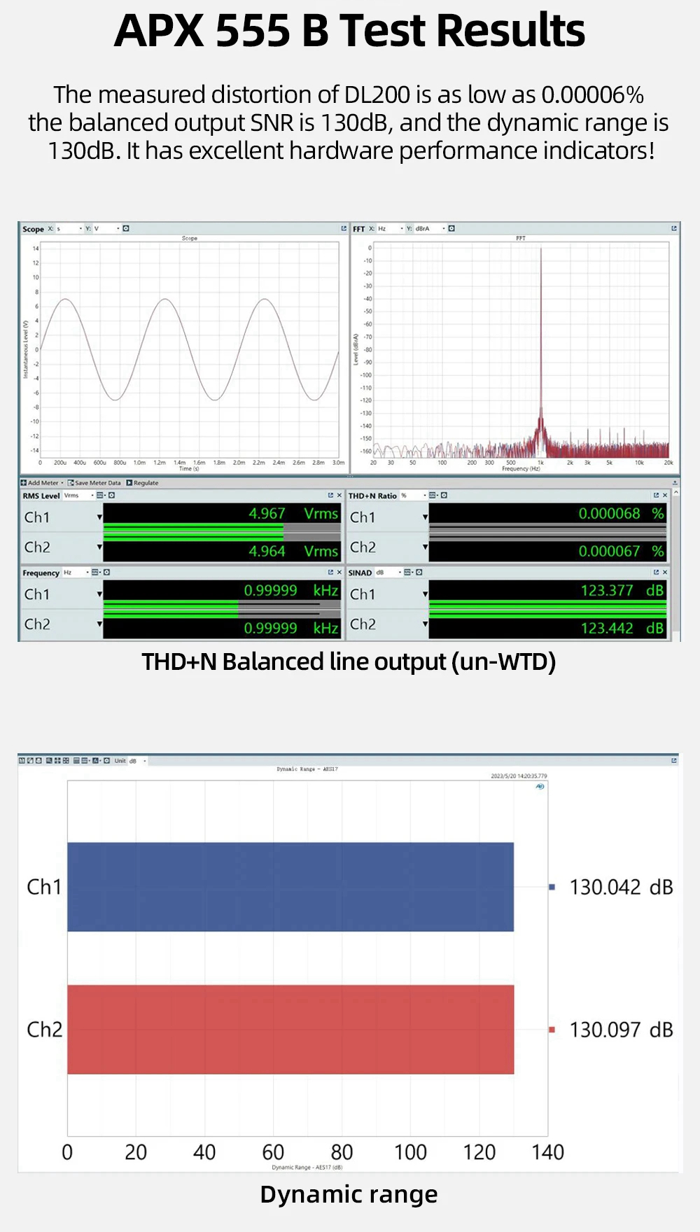 - THD+N as low as 0.00006%: The well-designed circuit makes its performance achieve an unprecedented distortion of -123dB!