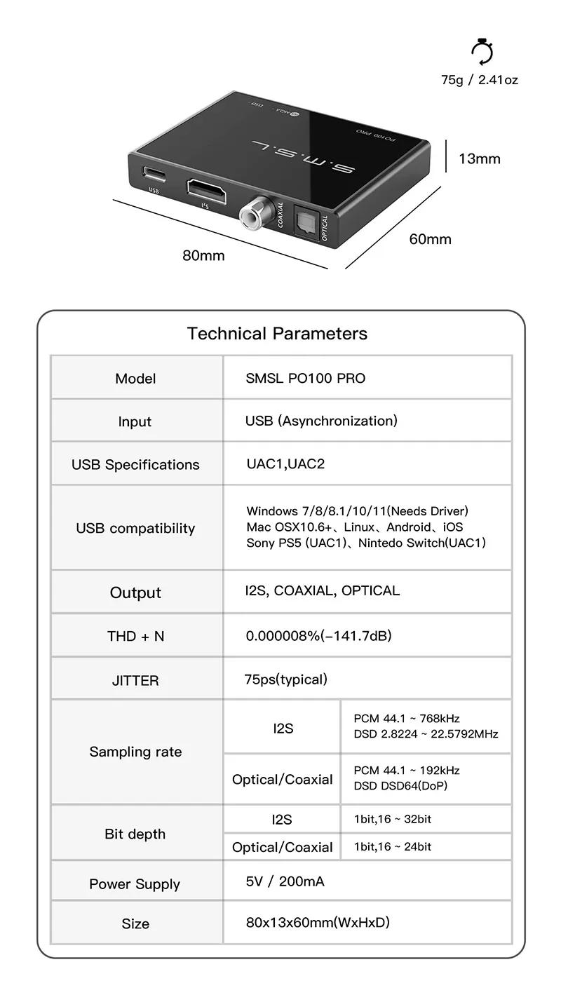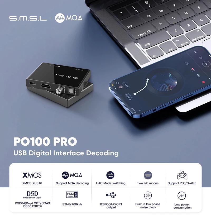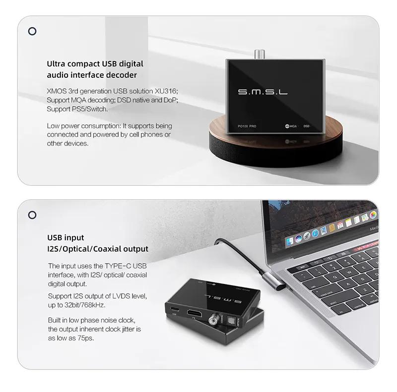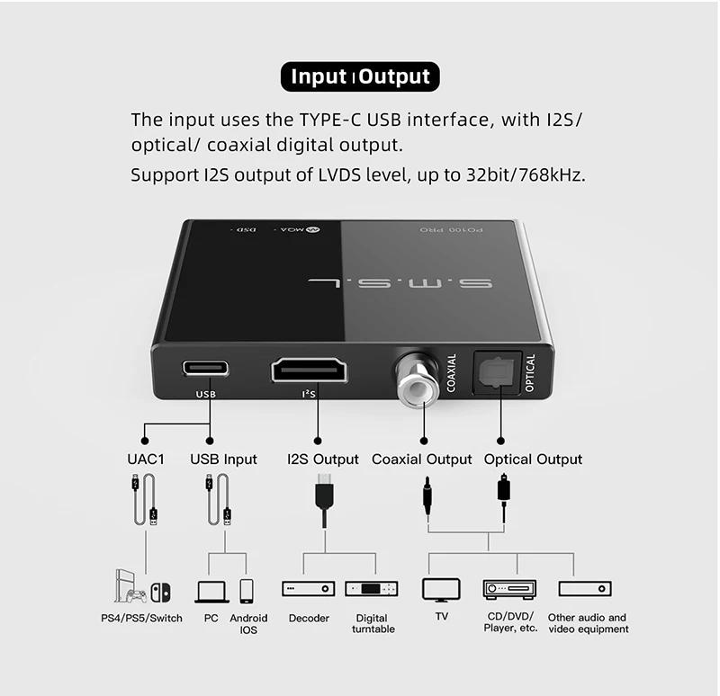 SMSL PO100 PRO USB Digital Interface Decoding MQA USB to Optical Coaxial I2S USB Interface Audio for XMOS