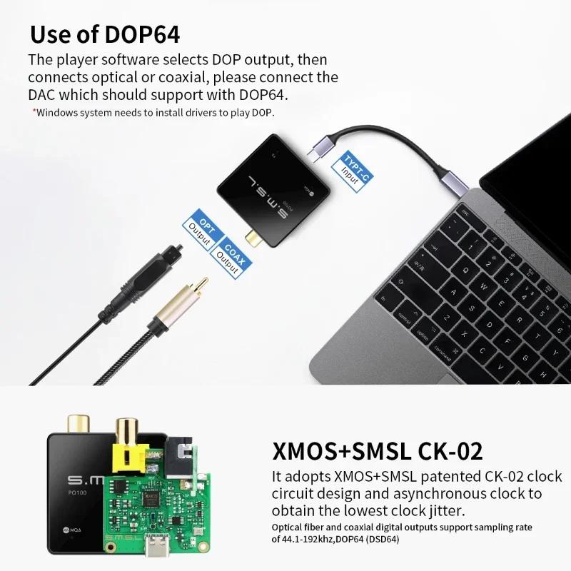 SMSL Silvery PO100 Mini Portable USB Digital Interface USB to Optical Fiber Audio Converter DOP64 XU316 for XMOS