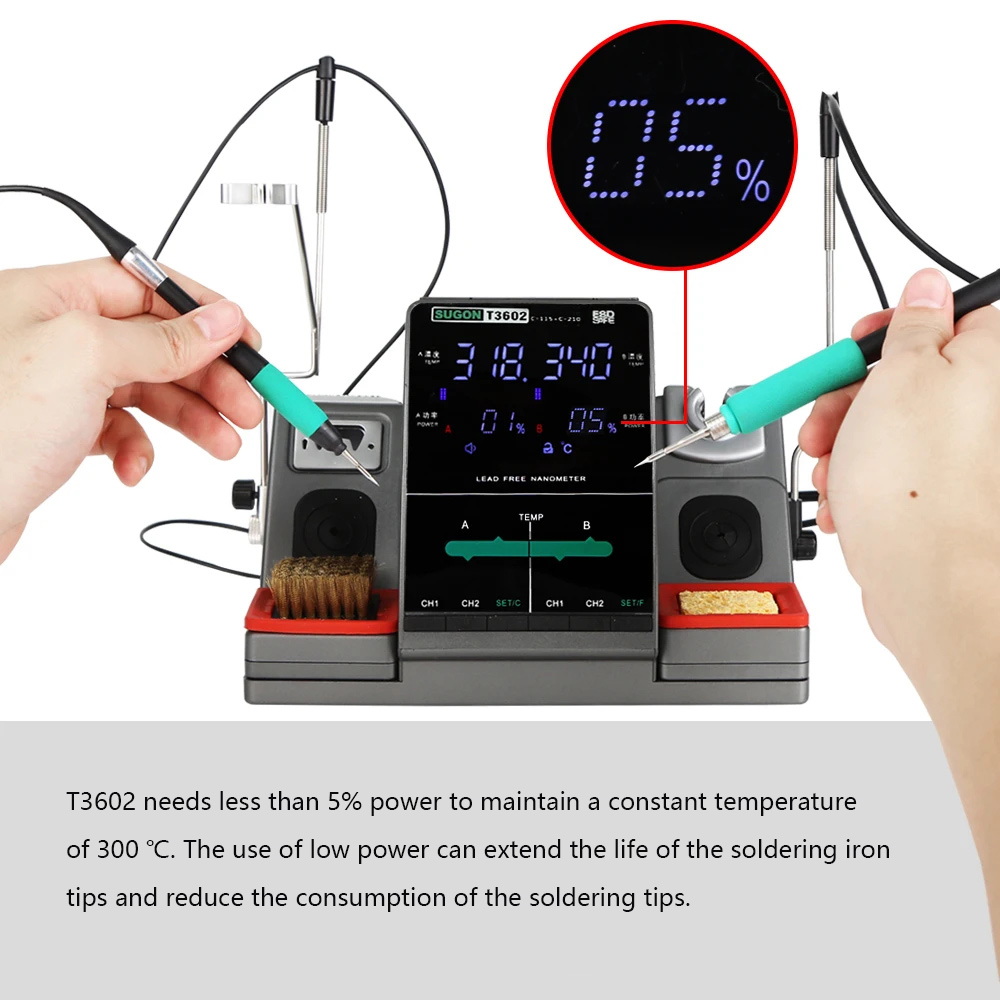 - Independent Control: There are areas A and B to realized independent control of two soldering irons.