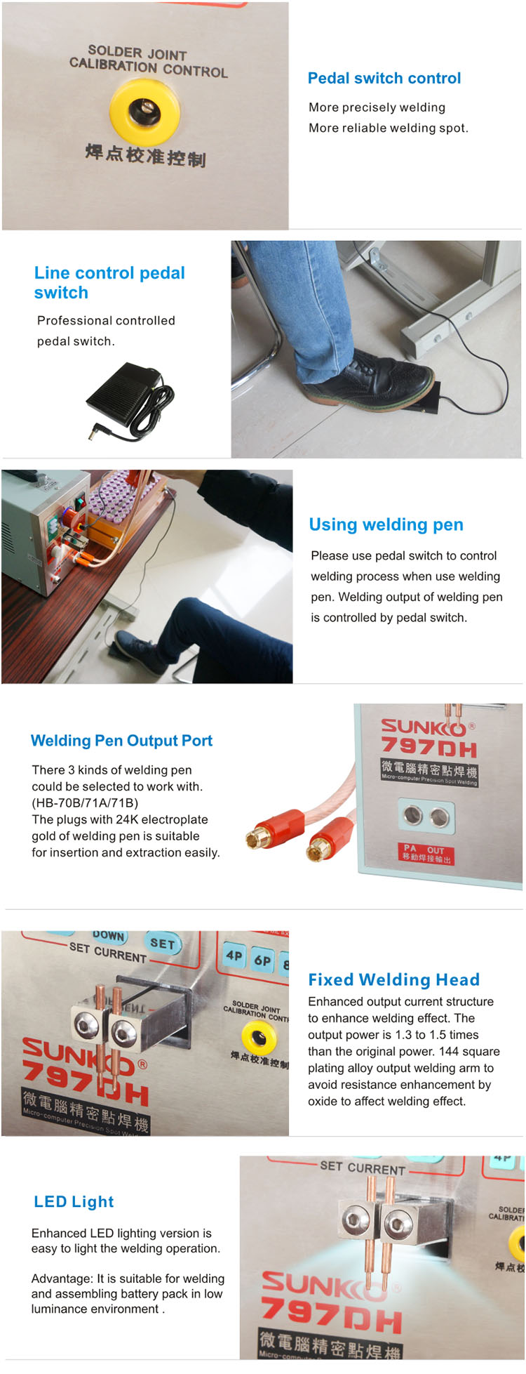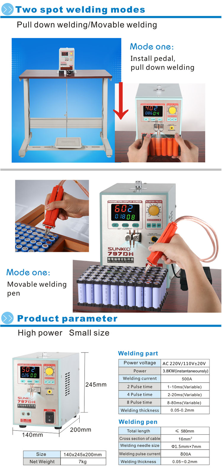 SUNKKO 797DH Lithium Battery Spot Welder Foot Pedal Welding Machine with 70BN Handle Welding Pen