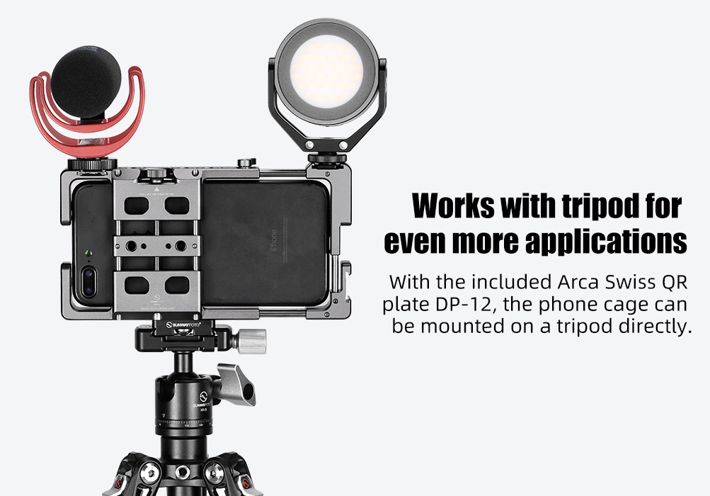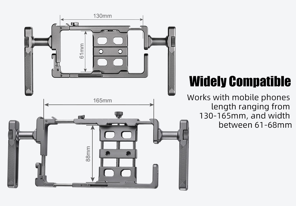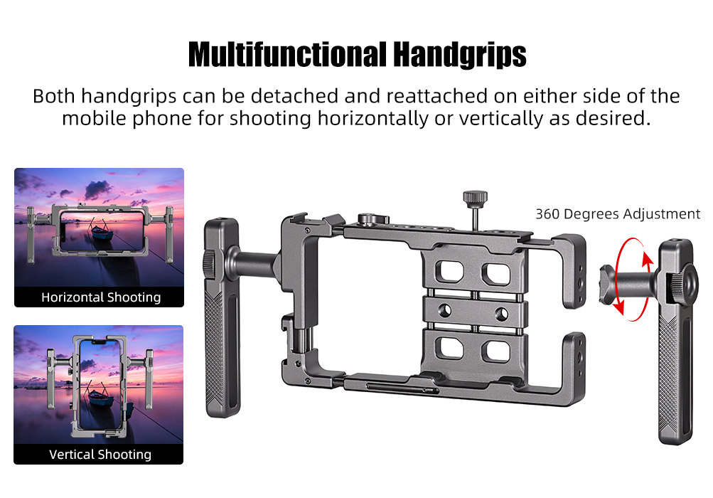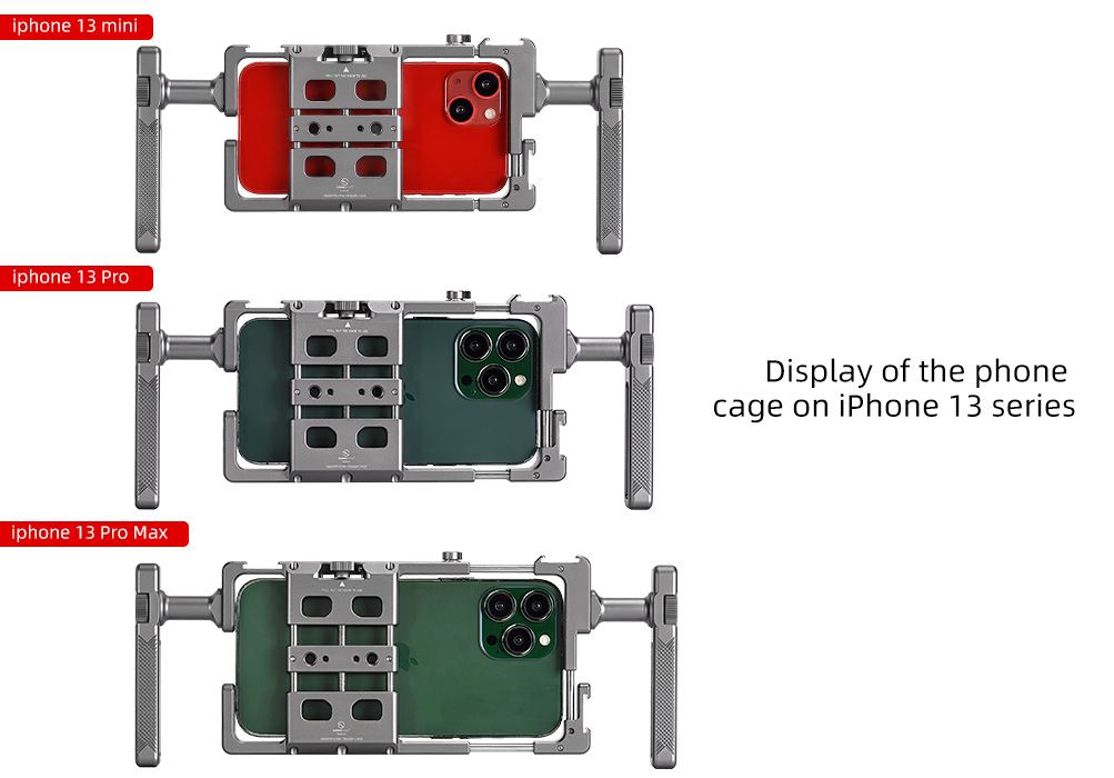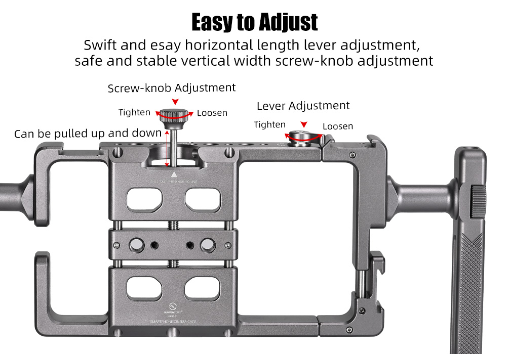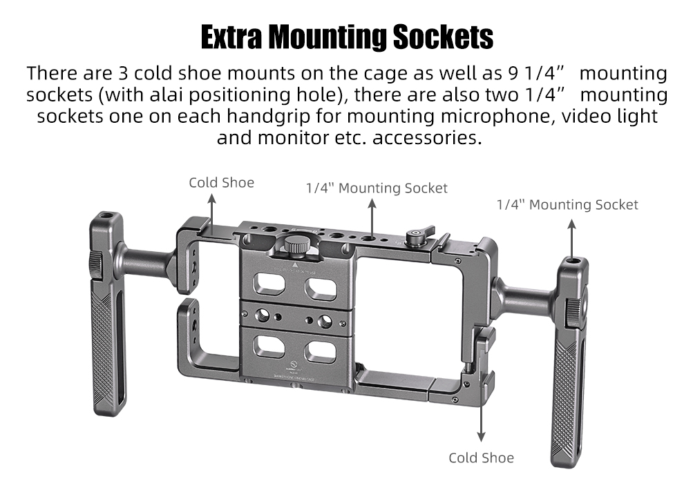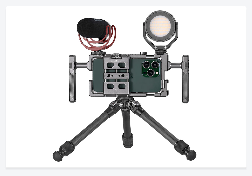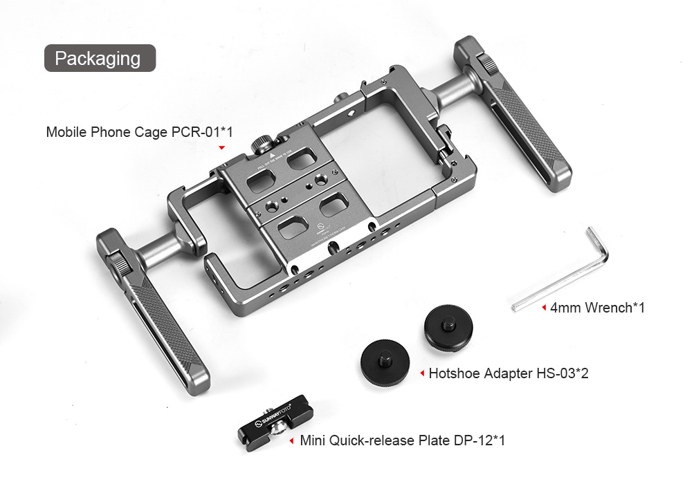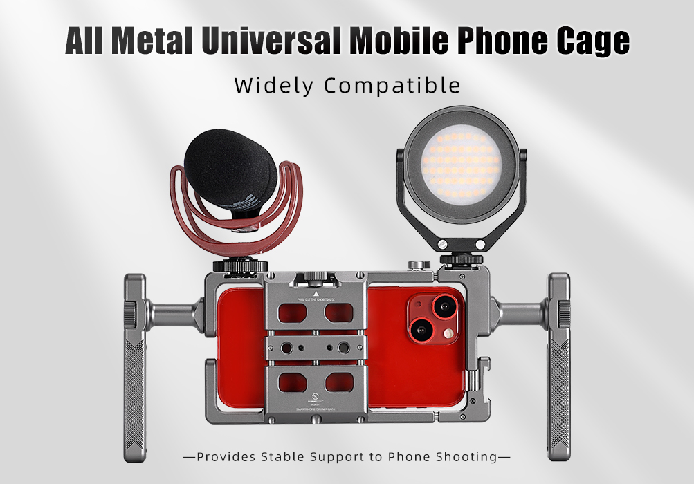 SUNWAYFOTO PCR-01 Handheld Aluminum Universal Mobile Phone Cage with Dual Multifunctional Handgrip