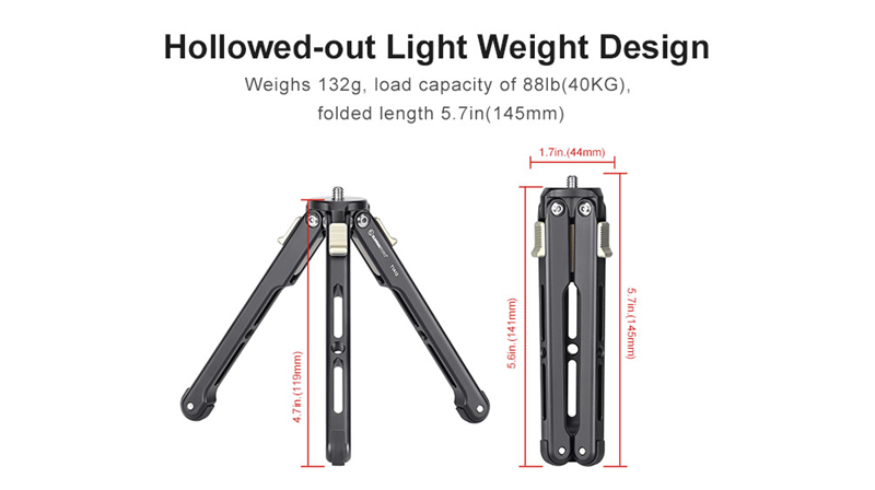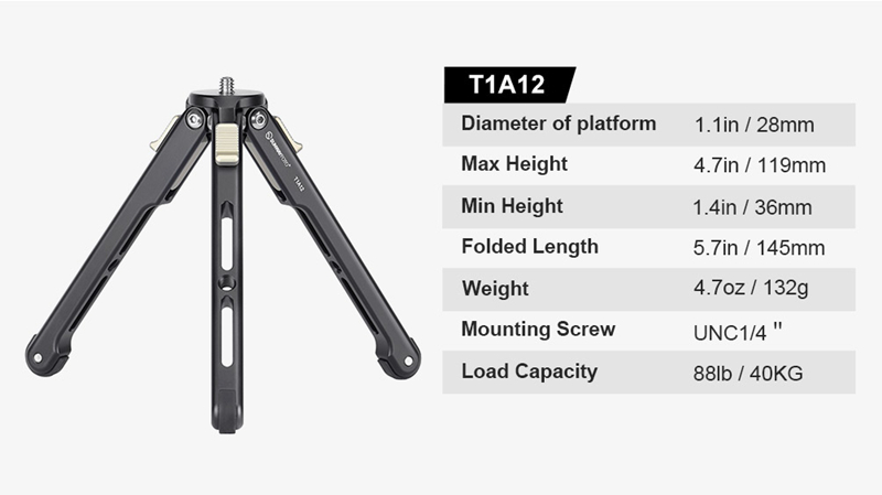SUNWAYFOTO T1A12 Mini Tripod Aluminium Alloy Table Top Tripod Load Capacity 88LB/40KG for Photography