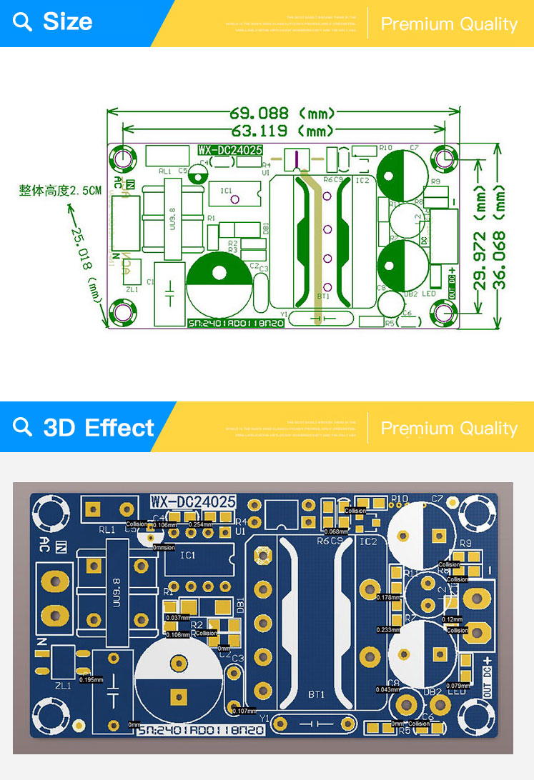 - Easy installation. 5.08 terminals or pin headers can be soldered to input and output ends.