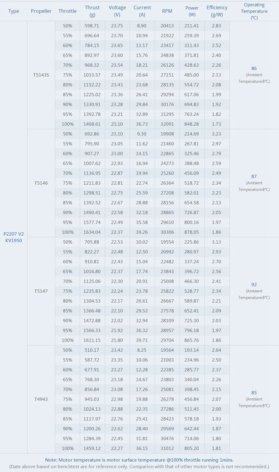 - P2207 V2.0 for powerful freestyle. Suitable freestyle movements including inverted lookback, power loop and yaw spin, etc.