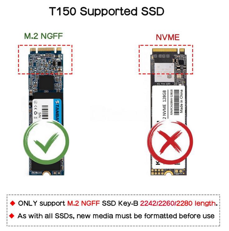 - Support M.2 B Key NGFF SSD 2242/2260/2280 length(Must find proper screws to fix SSD with 2242/2260 length)