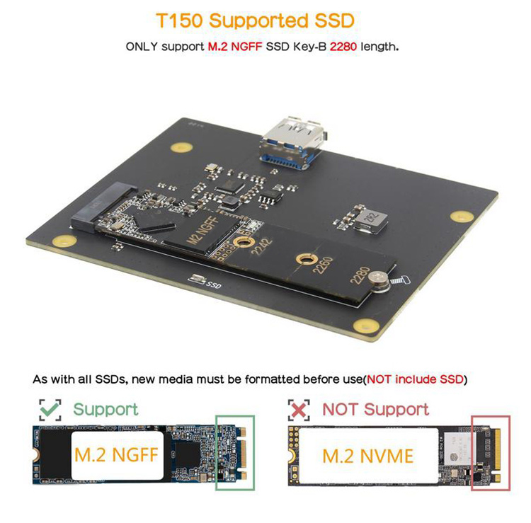 T150 Storage Expansion Board Support M.2 B Key NGFF SSD 2242/2260/2280 for NVIDIA Jetson Nano