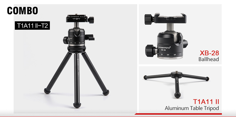T1A11-II-T2 Kit Pocket Tripod Mini Tripod Desktop Tripod Stand with Ball Head For Camera Phone Clamp