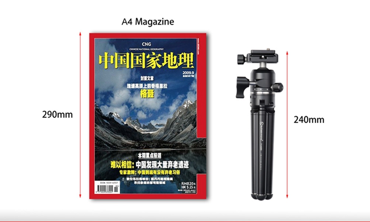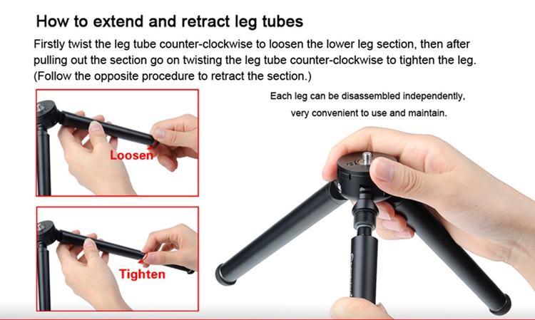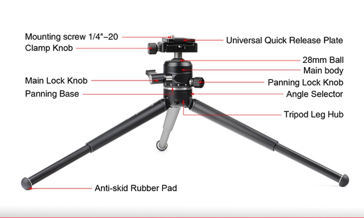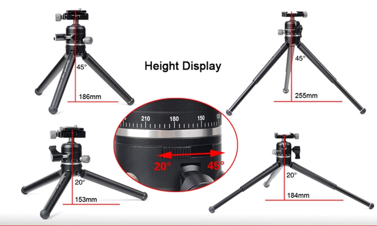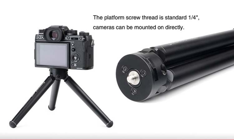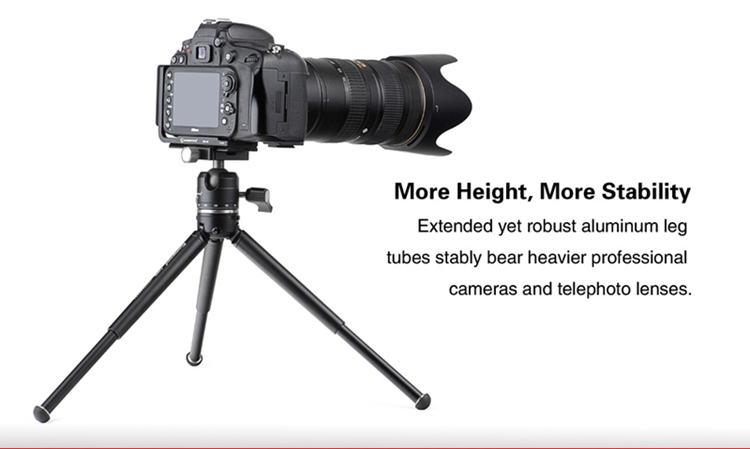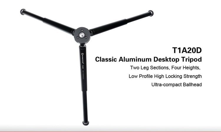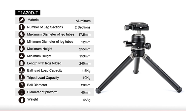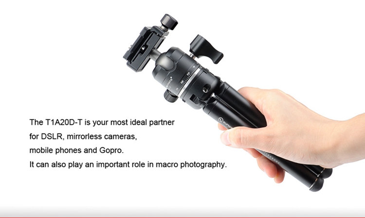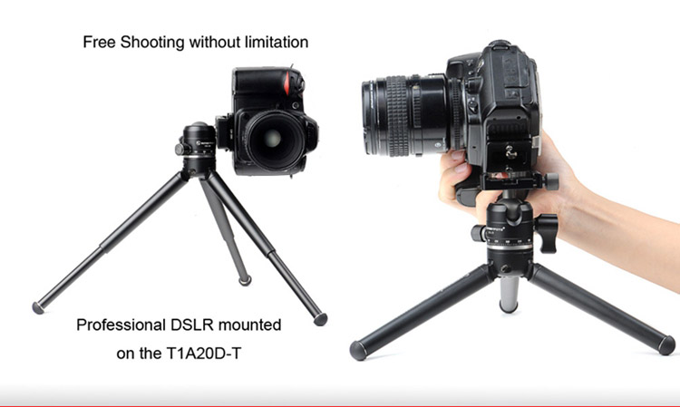 T1A20D-T Mini Tripod Desktop Tripod Aluminum Alloy Load 10KG w/ Ballhead Quick Release Plate For DSLR