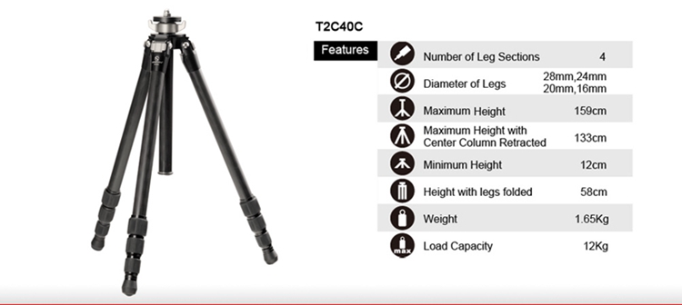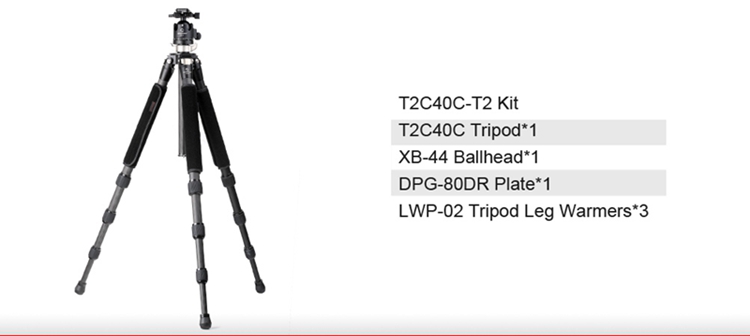 T2C40C-T2 Kit Carbon Fiber Tripod Professional Camera Tripod Stand 4-Section with Ball Head For SLR