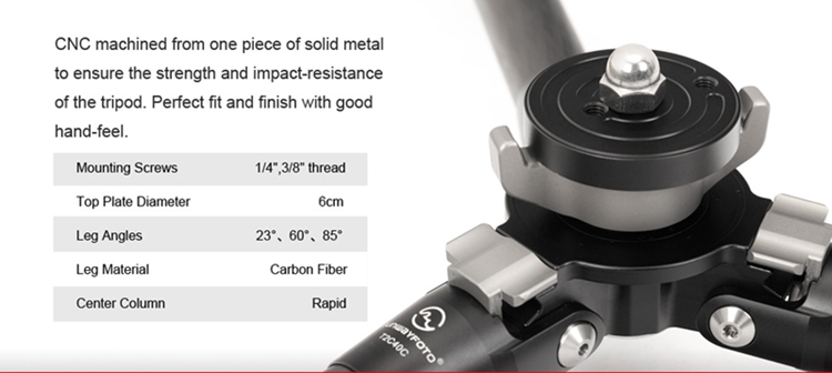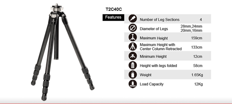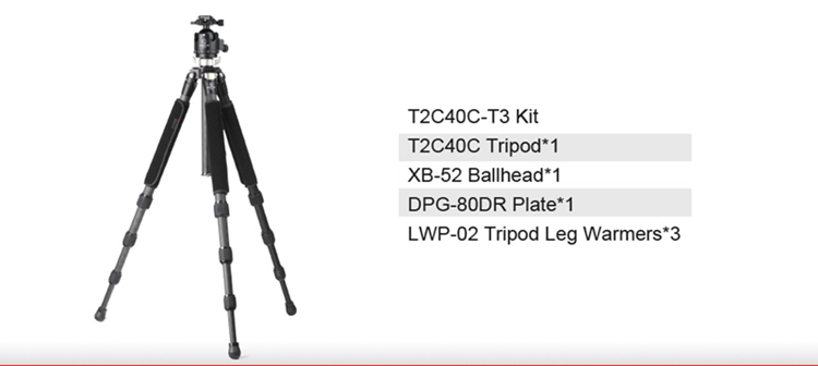 T2C40C-T3 Kit Carbon Fiber Tripod Professional Camera Tripod Stand 4 Sections with Ball Head For SLR