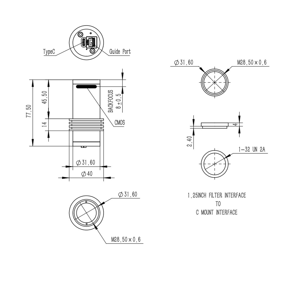 - The top adapter glass of V2 can be easily switched. One of the advantage of changeable top glasses is you can use one filter even you’re using Lens! You can add a 1.25inch-cs adapter to connect CS lens, or add a second CS-C lens for C-mount lens. The two adapters are all standard accessories of V2 cams.