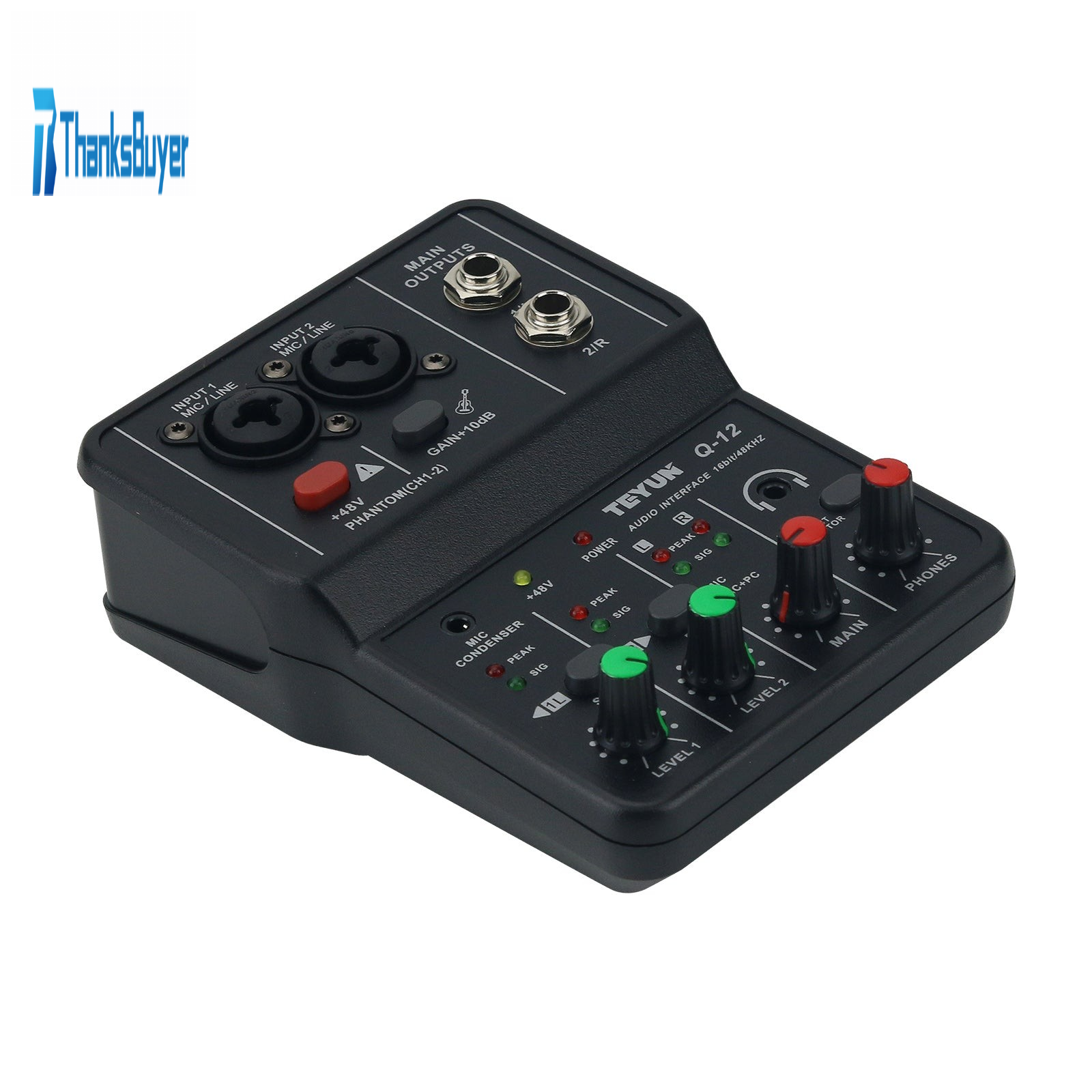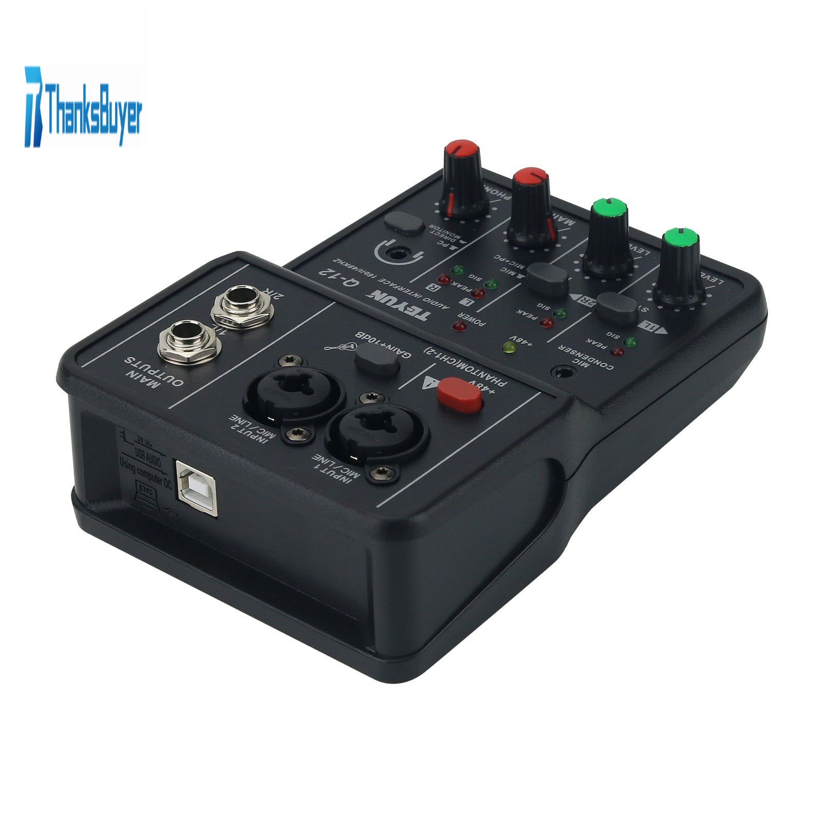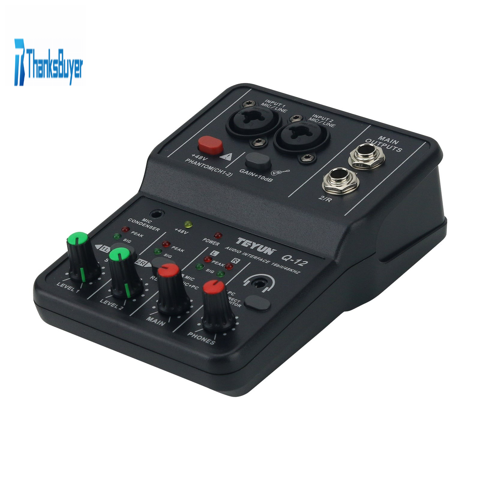 TEYUN Q-12 Professional Computer Recording Sound Card 16Bit 48KHz Audio Interface USB Drive-Free