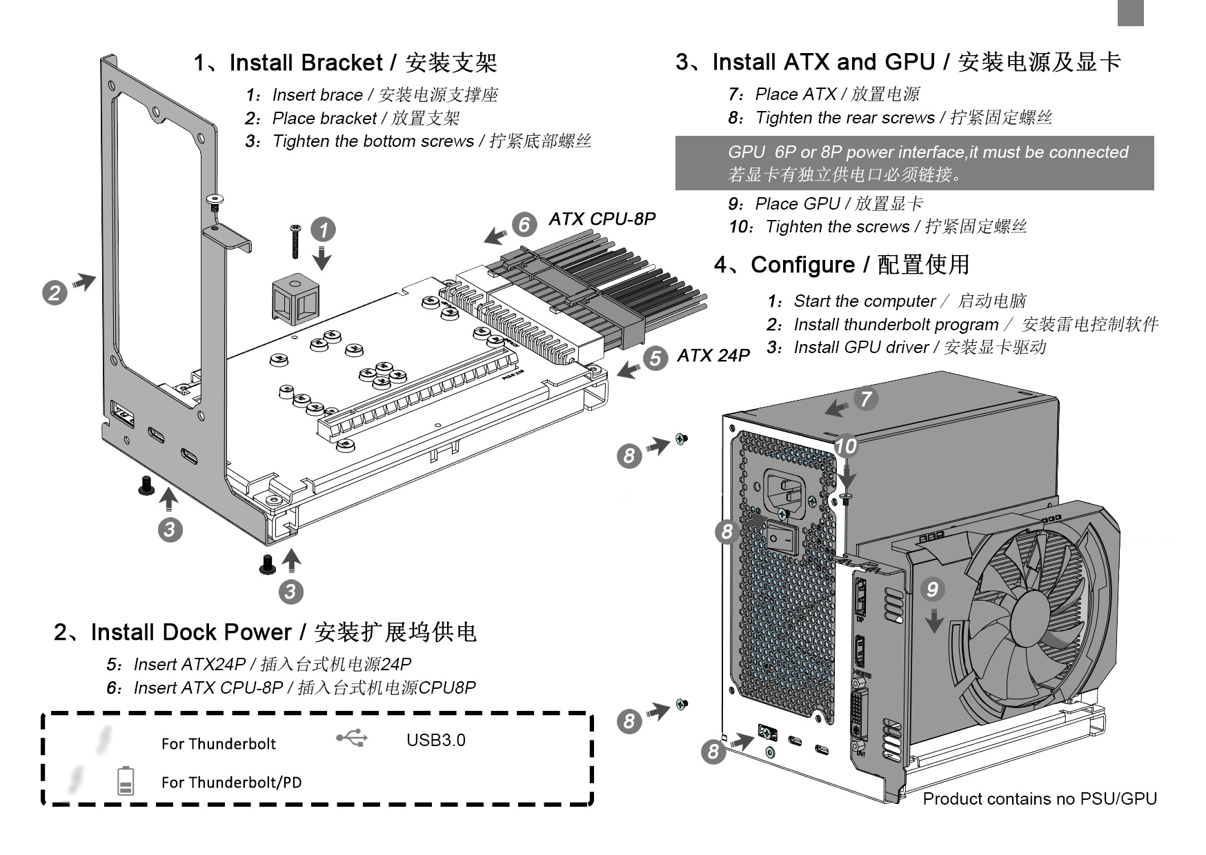 TH3P4G3 GPU Dock External GPU Dock w/ 2M/6.6FT Cable for Thunderbolt Macbook Notebook Graphics Card