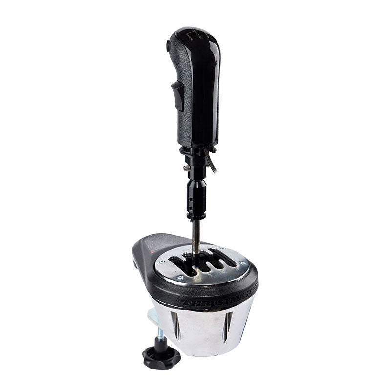 The TH8A Add-On Gearbox Shifter for PC, PS3, PS4 and Xbox One adds realism and authenticity to your racing experience. It offers realistic gear-shifting feel with its detachable knob. The gear stick is compatible with real universal (automotive) knobs available at car parts stores and big-box retailers, and the two included shift-plates offer your choice of "H"-pattern (7+1) and Sequential (+/-) shifting. The internal mechanism features 100% metal construction with a metal gear stick and clamping system. H.E.A.R.T. "Hall Effect AccuRate Technology" offers precision that won't decrease over time (with its contactless magnetic sensor). There is no tact switch and no potentiometer to wear out (allowing for unlimited product lifespan). The firmware is upgradable, and the internal memory offers adjustable gearshift travel to suit your driving style (software available for download on PC). There is an adjustable resistance when shifting gears and the shift-plate position and rotation is adjustable by 360 degrees. The clamping system position and rotation are also adjustable by 360 degrees. The clamp is optimized for any support surface, including tables or shelves from 1 to 55 mm in thickness (0.04" to 2.2"). The built-in screw threads and removable clamping system allow for cockpit mounting. For PC use, the TH8A Add-On Gearbox Shifter works with all racing wheels on the market. Used with controllers for PS3 and PS4, the gearbox is suitable for T500RS, Ferrari F1 Wheel Integral T500, T300RS, and T300 Ferrari GTE racing wheels. On device for Xbox One, it works with the TX Racing Wheel. Add excitement and realism to your racing experience with the TH8A Add-On Gearbox Shifter (for THRUSTMASTER) for PC, PS3, PS4 and Xbox One.