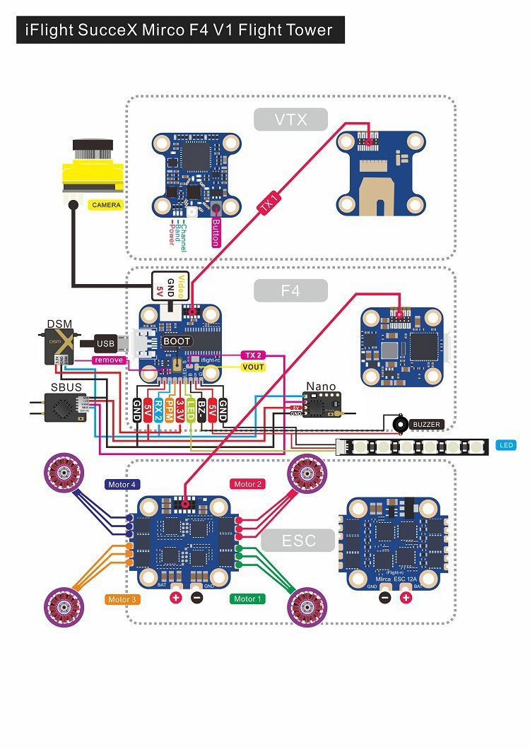 Three-Layer SucceX F4 Flight Tower F4 Flight Controller & 12A 2-4S 4-In-1 ESC & PIT/25/100/200Mw VTX