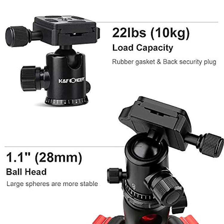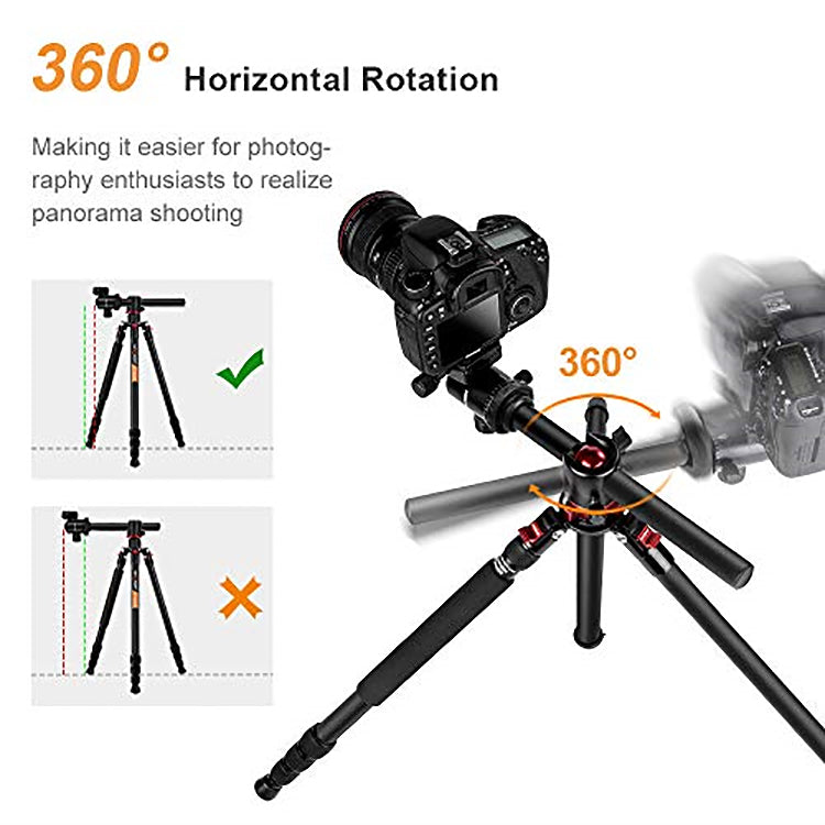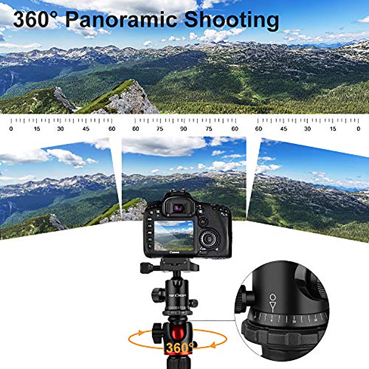 - Metal Ball Head: Can be rotated 360 degrees, helping to expand camera activity range when panoramic shooting.(the bubble level help to judge the level and the accurate composition)