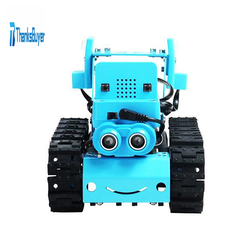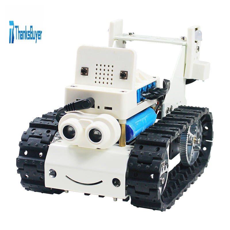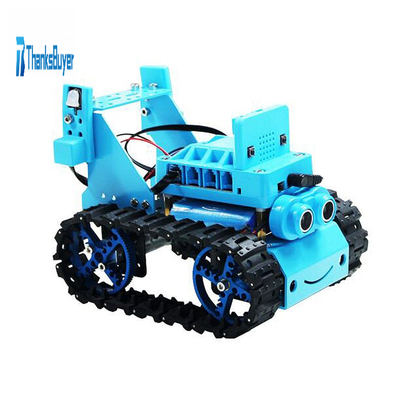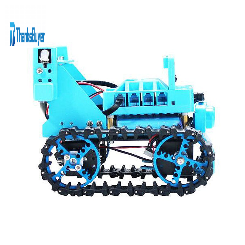 - Various fun games. Automatic obstacle avoidance function: the obstacle information is fed back through ultrasonic ranging sensor, so as to realize the automatic obstacle avoidance function. Tracking function: Automatically recognize black line through the tracking sensor and follow the black line to realize automatic walking. Walking in the wild: Tracks allow the robot to complete climbing and other actions on more complex terrain. Colorful RGB lights: Through the programming program, multiple colors of lights can be set to display circularly. Dot matrix display interactive multiple play: You can DIY fun texts, let you add more fun when operating. Robot mobile phone interaction: Through APP control, the car can complete the actions of turning, rotating, advancing and retreating.
