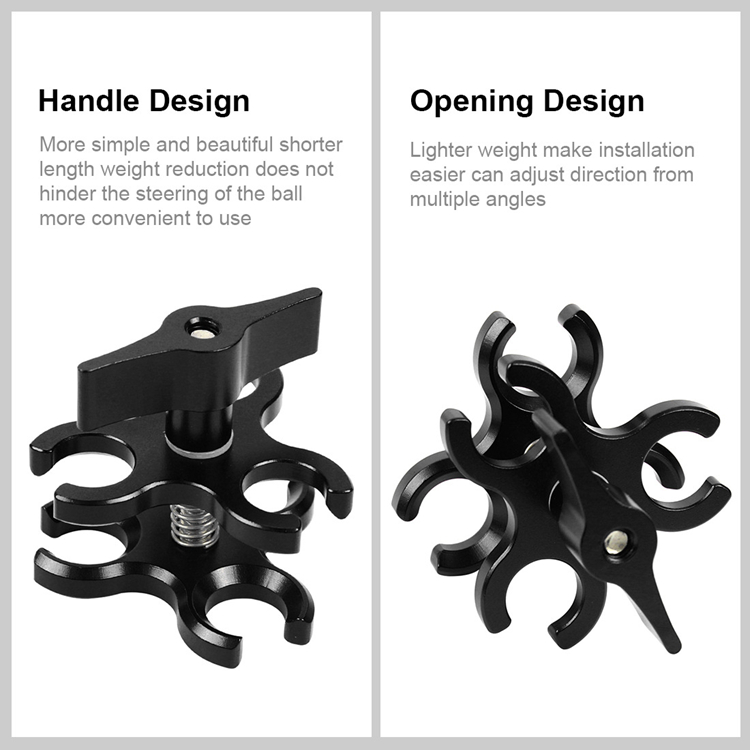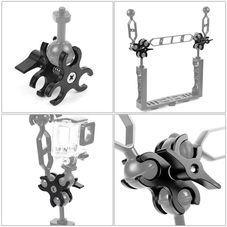 Triple Ball Clamp Diving Camera Bracket CNC Aluminum Spring Flashlight Clamp For Underwater Photography PU256