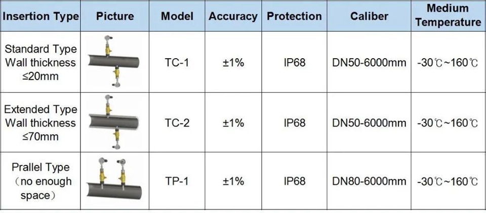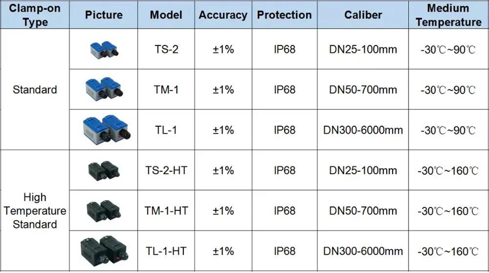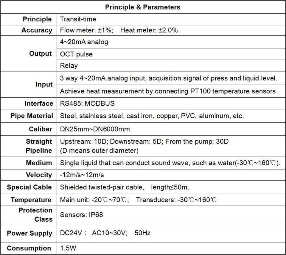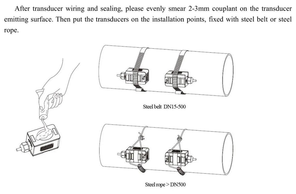 - Easy installation process, simply clamp the transducers on the pipe surface.