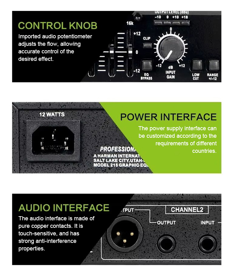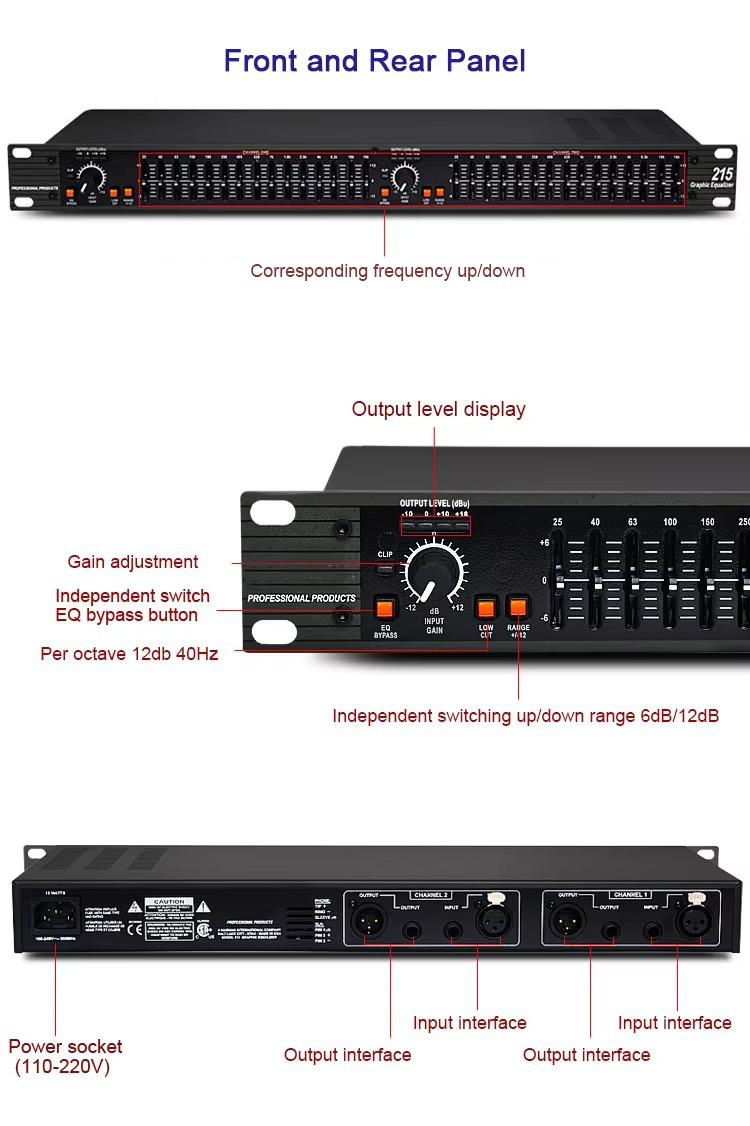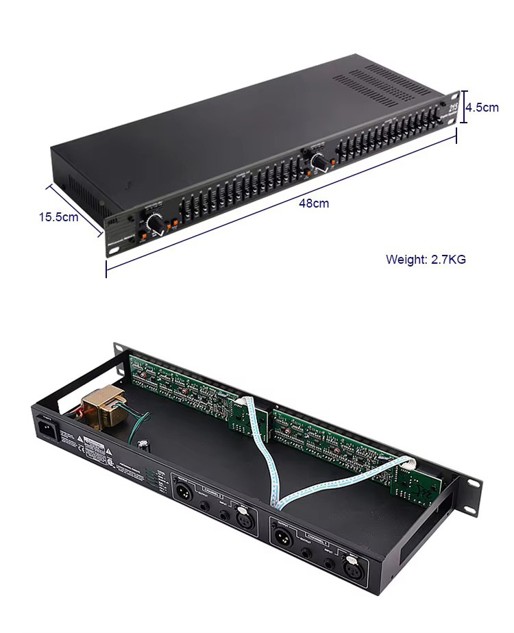 TZT-215 2-channel 15 Band Equalizer Professional Graphic Equalizer (Black Panel) with XLR and TRS