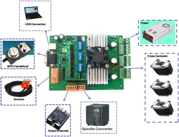 - 1 x USB MACH3 3 Axis –TB6600 Stepper Motor Controller Board