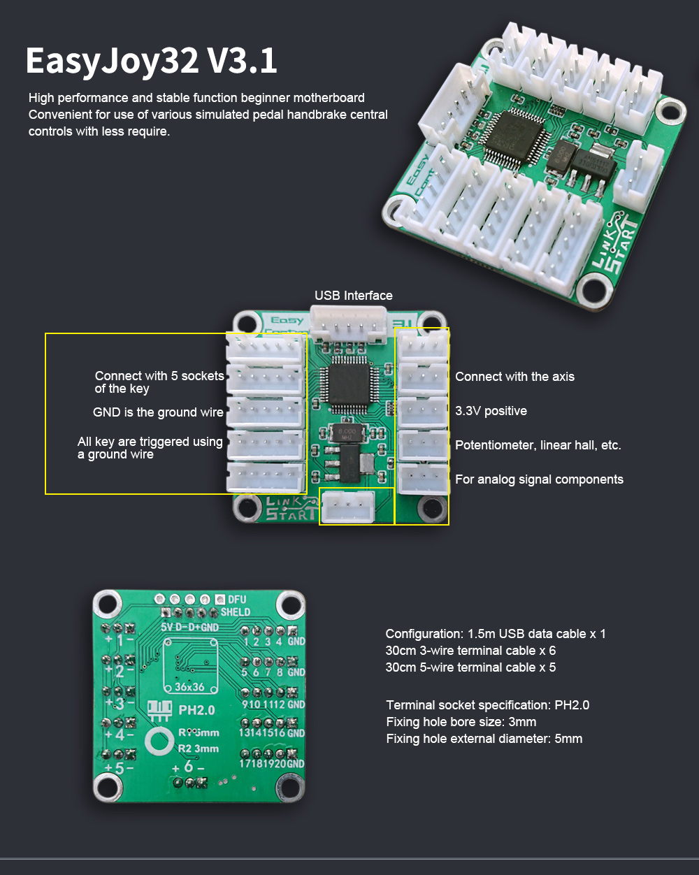 V3.1 Controller Board EJOY EasyJoy32 with 6 Axis and 20 Keys for Flight Peripheral and Simulated Racing