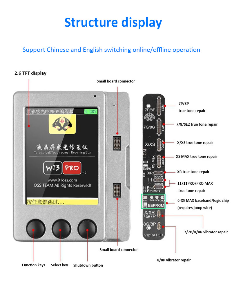 W13 PRO True Tone Programmer True Color & Touch Screen Repairing Box w/ 5 Boards For iPhone 7-12