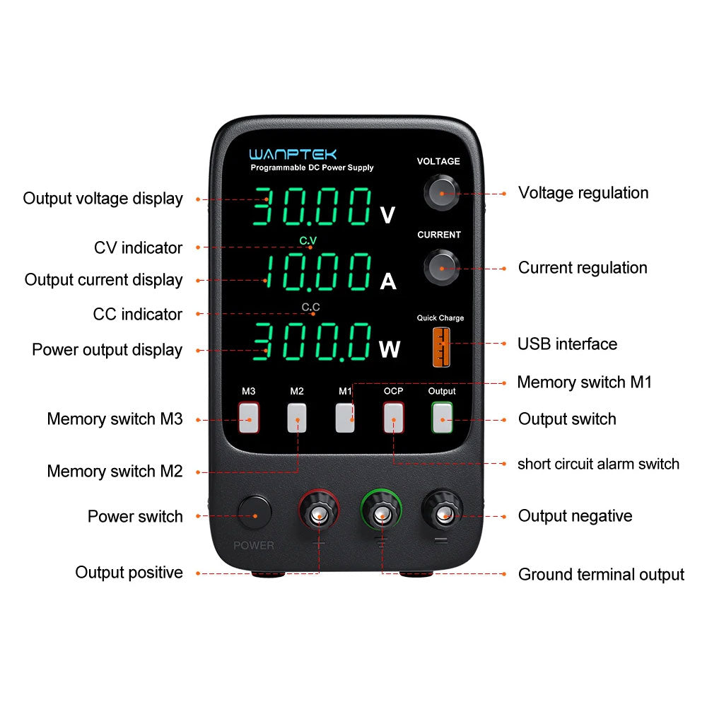 WANPTEK APS3010H 30V10A Programmable DC Power Supply Regulated Power Supply Supports Data Storage