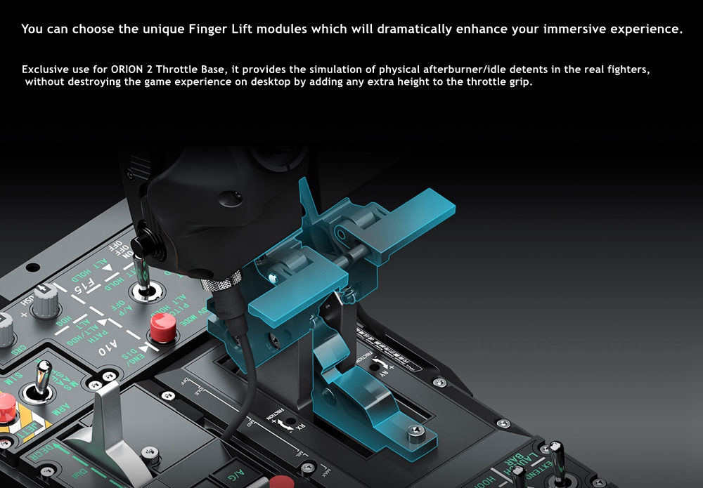- Finger Lift for Orion2 base. Add in the true feeling of controlling the real aircraft on your desktop. This module has 3 adjustable detent positions. You can choose the Cutoff(Reverse), Mid or After Bunner (Forward) detent position to meet your need in Modern Air Combat, Space Flight or WW 2 aircraft.