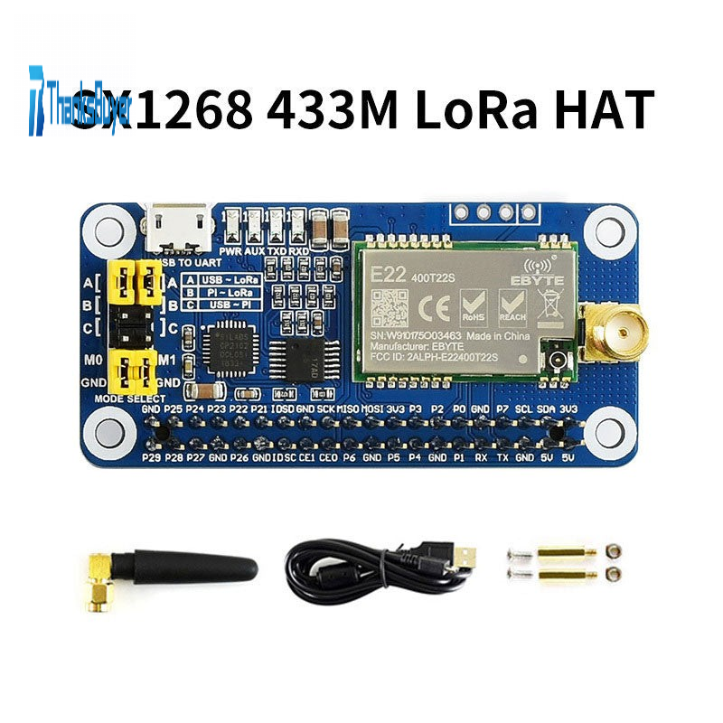 With SX1268, it is a extension board for Raspberry Pi LoRa, covers 433MHz frequency band. It allows data transmission up to 5km through serial port.