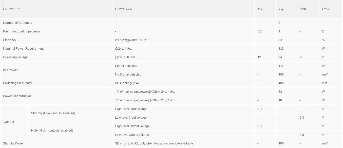 - Output Power: 50W per channel