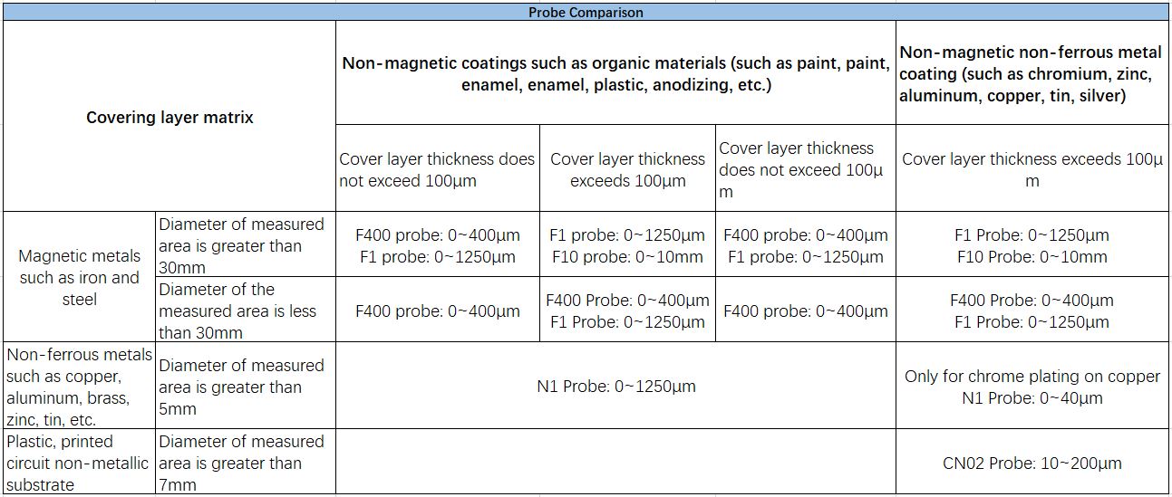 - Measuring range: 0-1250um (chrome plating on copper 0-40um)