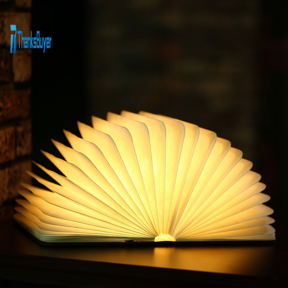Wooden 3-Color Folding Book Lamp Book Shaped Lamp Foldable Book Light Gift USB Rechargeable M Size