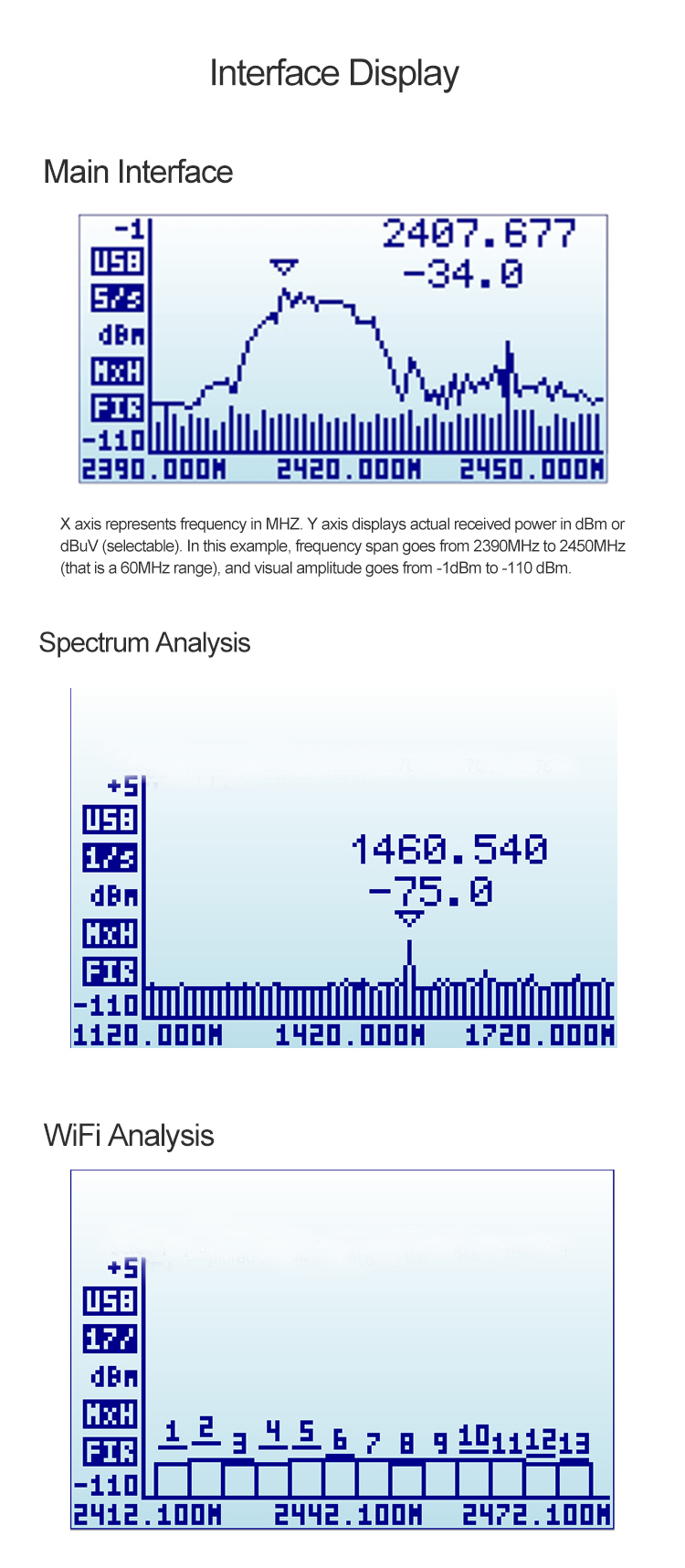 WSUB 1G 240-960MHz Portable Spectrum Analyzer Handheld Spectrum Analyzer Pocket Size