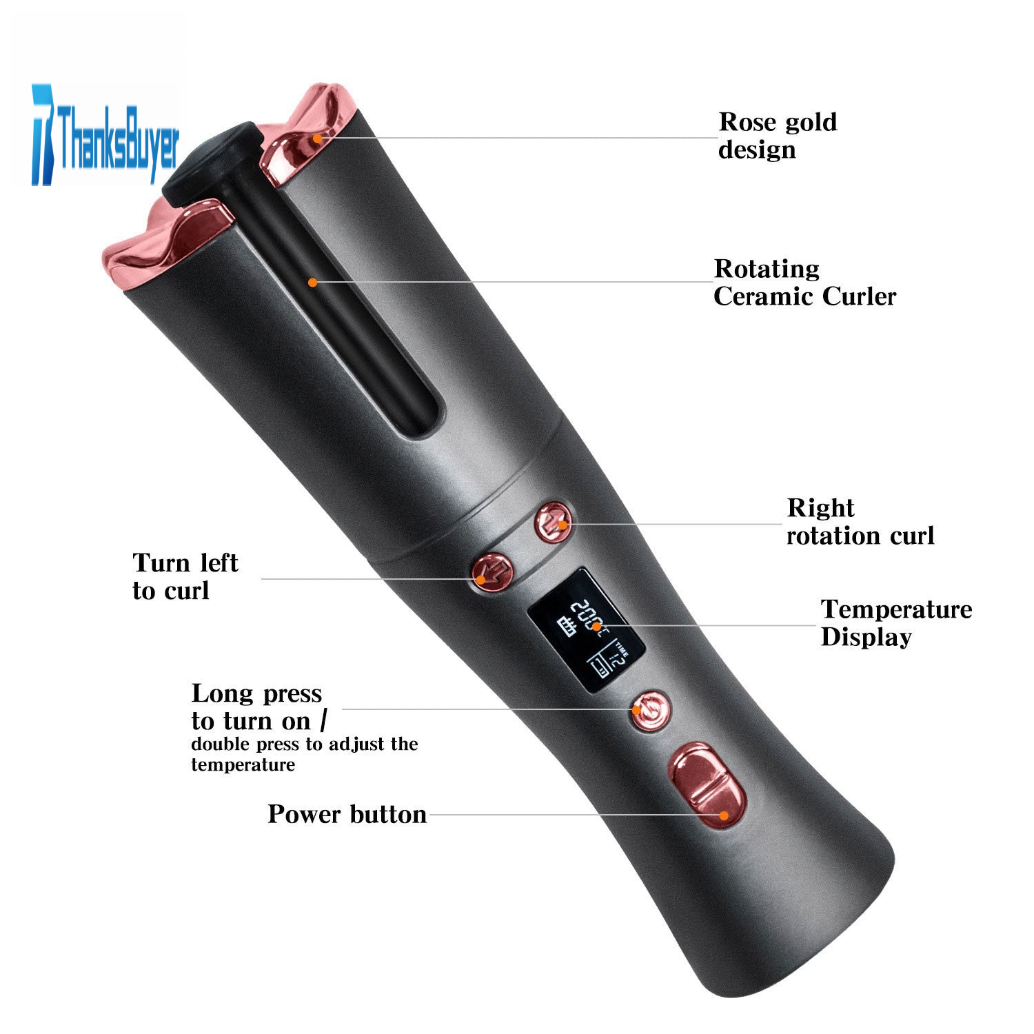 WT-121 Automatic Curling Iron Cordless Hair Curler Portable Ceramic Curling Wand USB Rechargeable