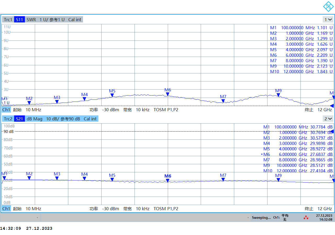 It is a ultra-wideband low-phase noise amplifier, supporting full band 10M-12000M and with  noise figure ≤5 and gain >30dB. The flatness of the full frequency band is very good, with a flatness of no more than 2dB. It is powered by 5V. The LNA amplifier can be used as an input low-noise amplifier for a wide-band receiver or as a driving stage for frequency mixers' local oscillator signal. It can be applied directly as a system module or as a validation platform.