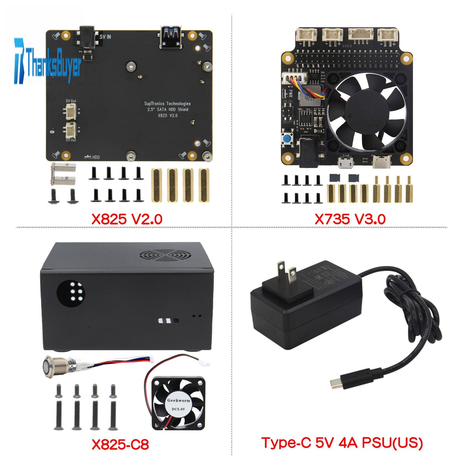 X825 V2.0 2.5 Inch SATA HDD/SSD Expansion Board + X825-C8 Case + X735 V3.0 + 5V 4A Power Adapter
