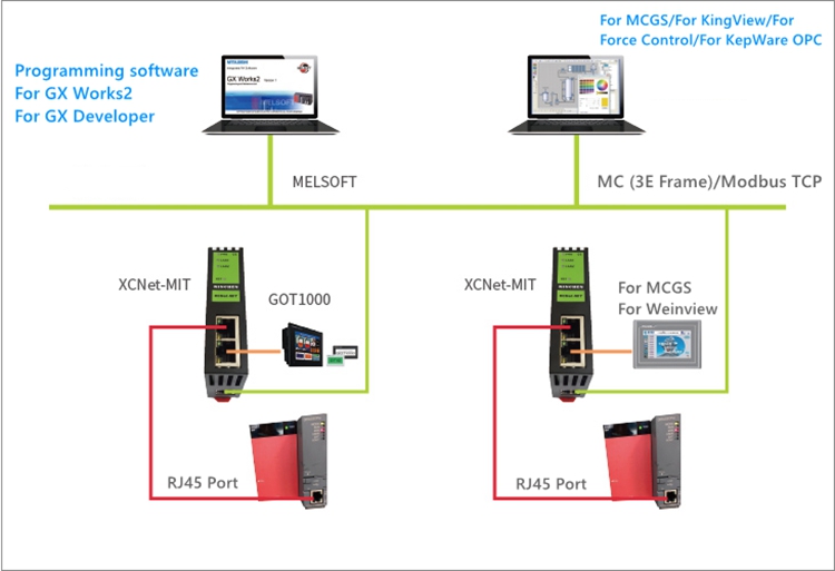 - XCNet MIT is a high-performance protocol conversion gateway used for Ethernet data acquisition for Mitsubishi Q03UDE, Q03UDV, L-series and other network interface PLCs, making it very convenient to build production management systems.