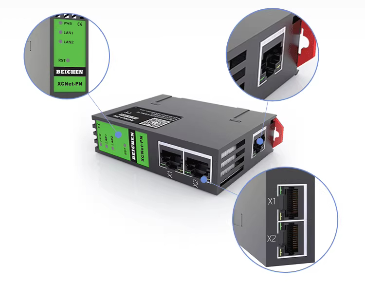 LAN1/LAN2 of XCNet-PN has cross-network segment functionality. It can convert the S7TCP protocol of LAN1 port to ModbusTCP protocol and BCNetS7 (S7TCP/IP) protocol of LAN2 port, and LAN2 supports ModbusTCP master-slave communication.