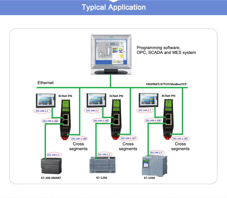 XCNet-PN is a high-performance protocol conversion gateway designed to meet the increasing demand for factory equipment informatization (equipment network monitoring and production management). It can be used for Ethernet data acquisition of PLCs (S7-1200/1500, S7-300PN, S7200 SMART, etc.) for Siemens with Ethernet interface. It is very convenient to build a production management system.