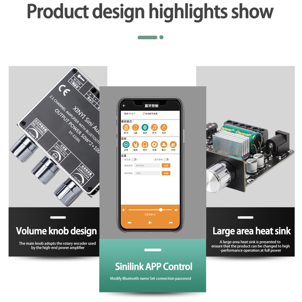 XINYI Sini Audio 2.1 Channel Amplifier Board Bluetooth Amplifier Module 50W*2+100W Board XY-E100L