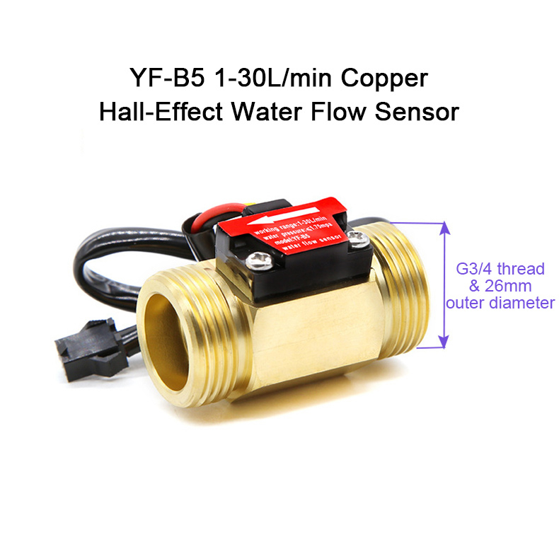 YF-B5 G3/4 1-30L/min Copper Hall-Effect Water Flow Sensor for Water Heaters Agricultural Irrigation