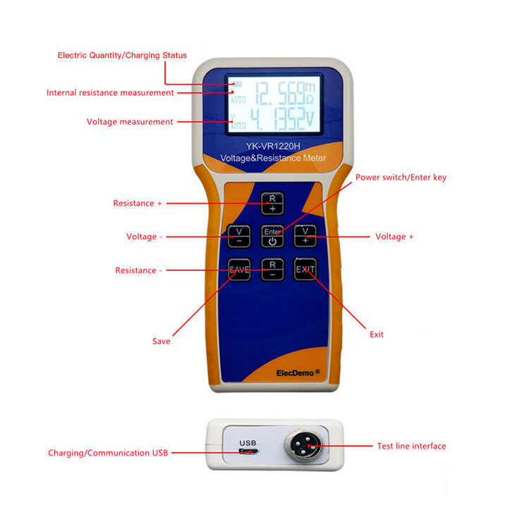 YK-VR1220H Lithium Battery Meter Voltage & Resistance Meter w/ Battery Holder For Battery Pack 18650