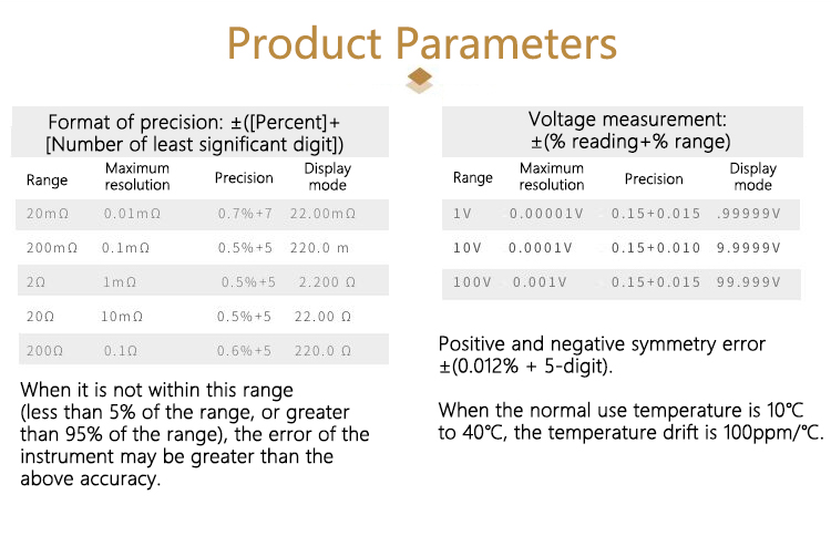 - Good precision and high sensitivity. It is a four-wire 1Khz AC sine battery internal resistance meter. Its maximum resolution of internal resistance is 0.00001Ω, and it can be used to measure resistance within 200.0Ω. The maximum voltage resolution is 0.00001V, and the voltage within ±99.999V can be measured. The minimum voltage of lithium battery that can be displayed is 0.0001V