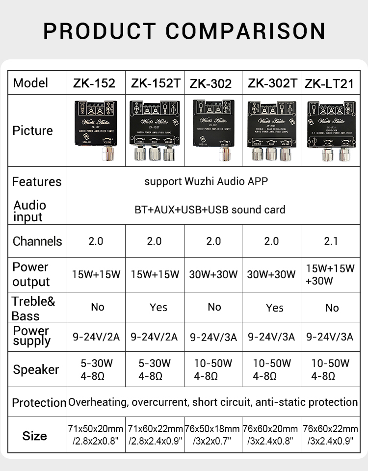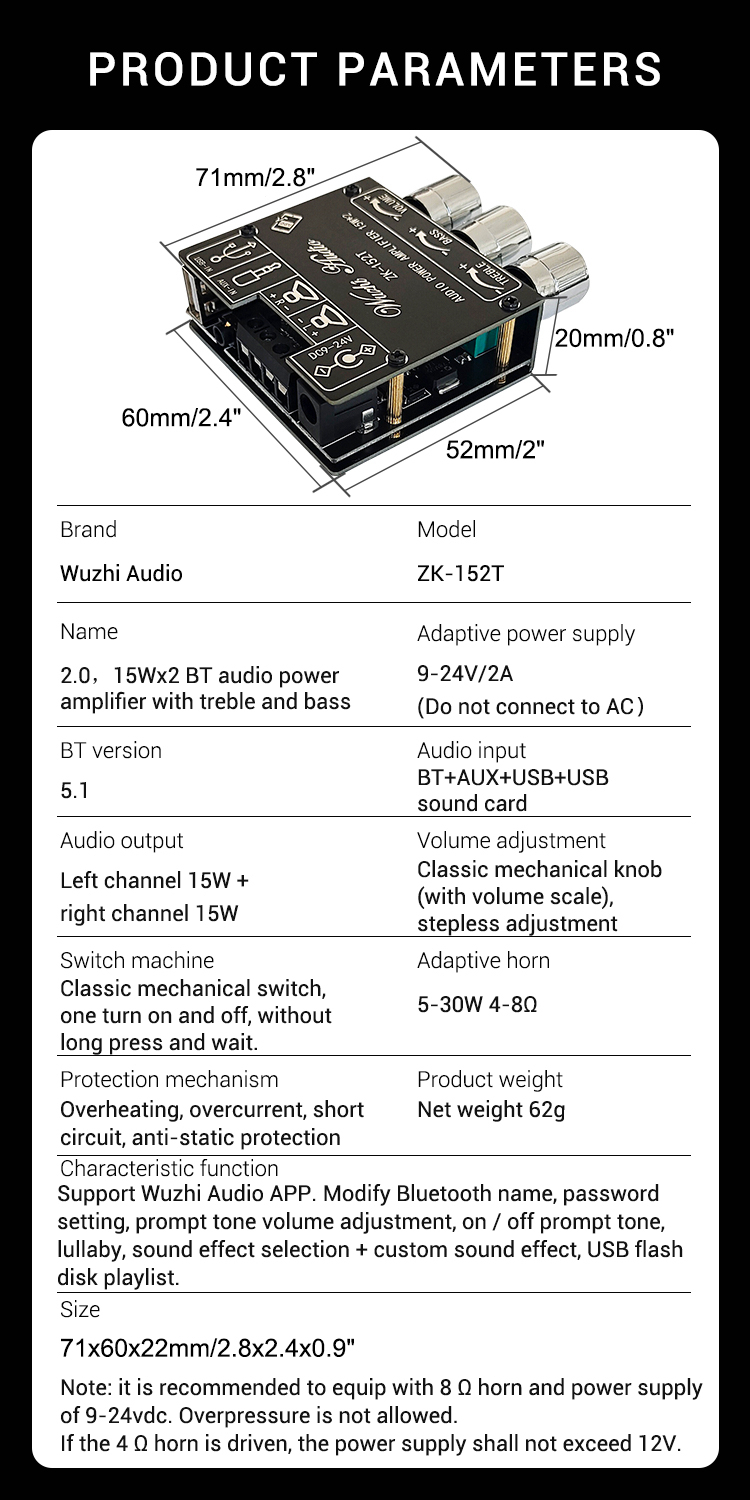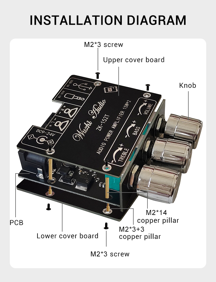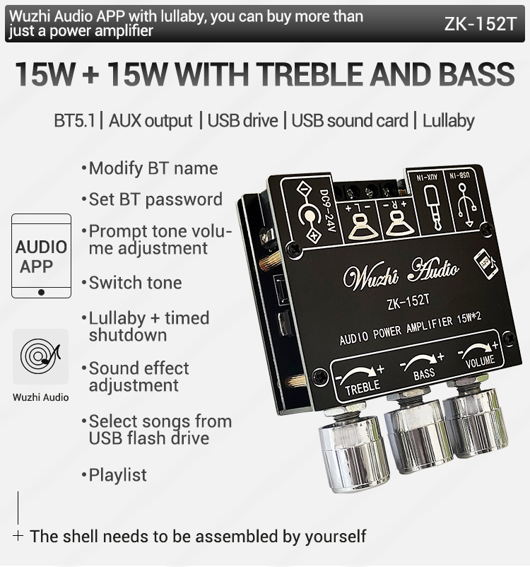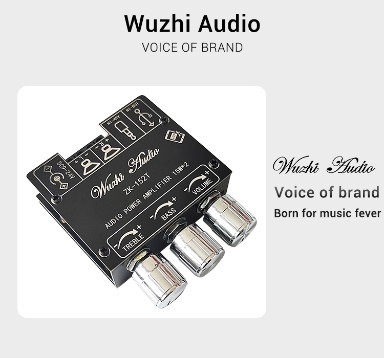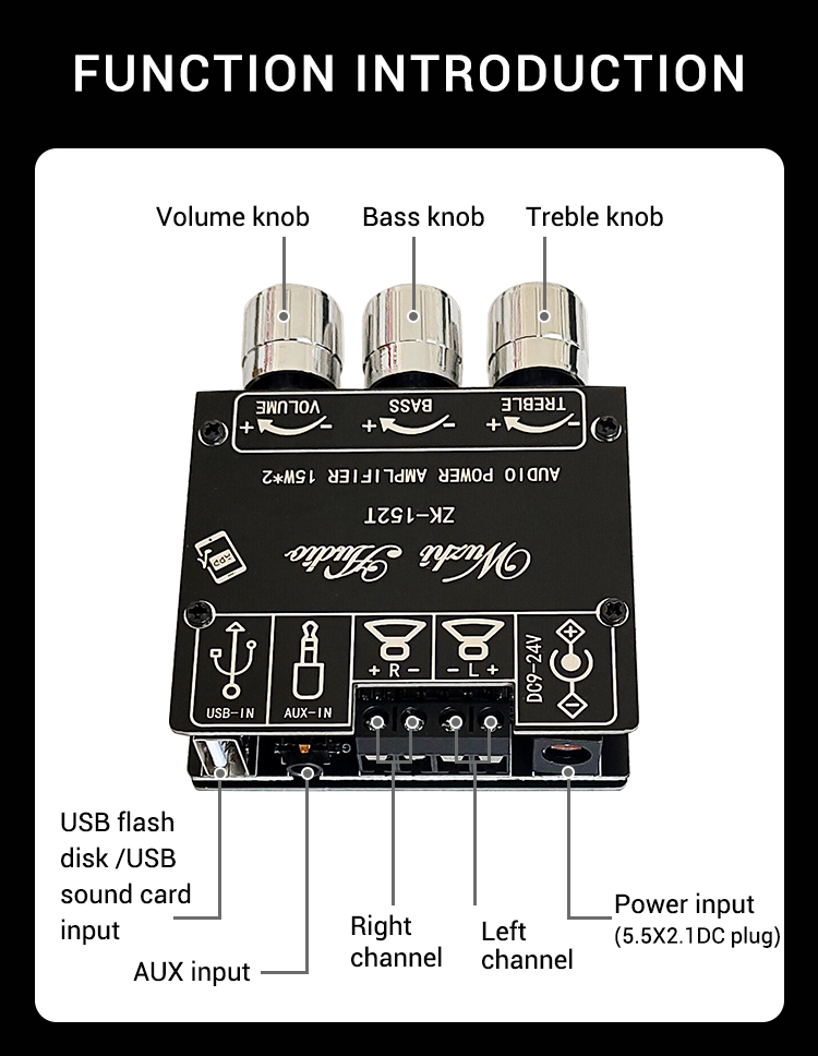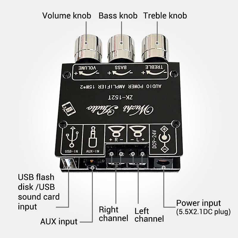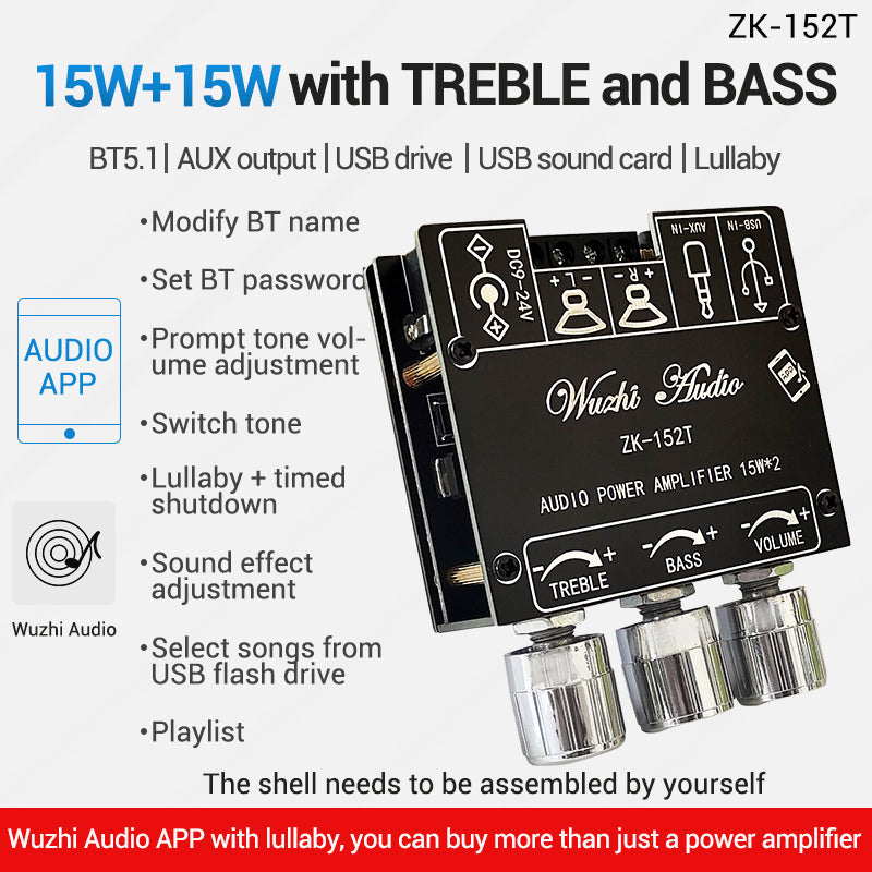 ZK-152T 15Wx2 Audio Power Amplifier Stereo Amplifier Module Bluetooth Power Amp Board w/ Treble Bass